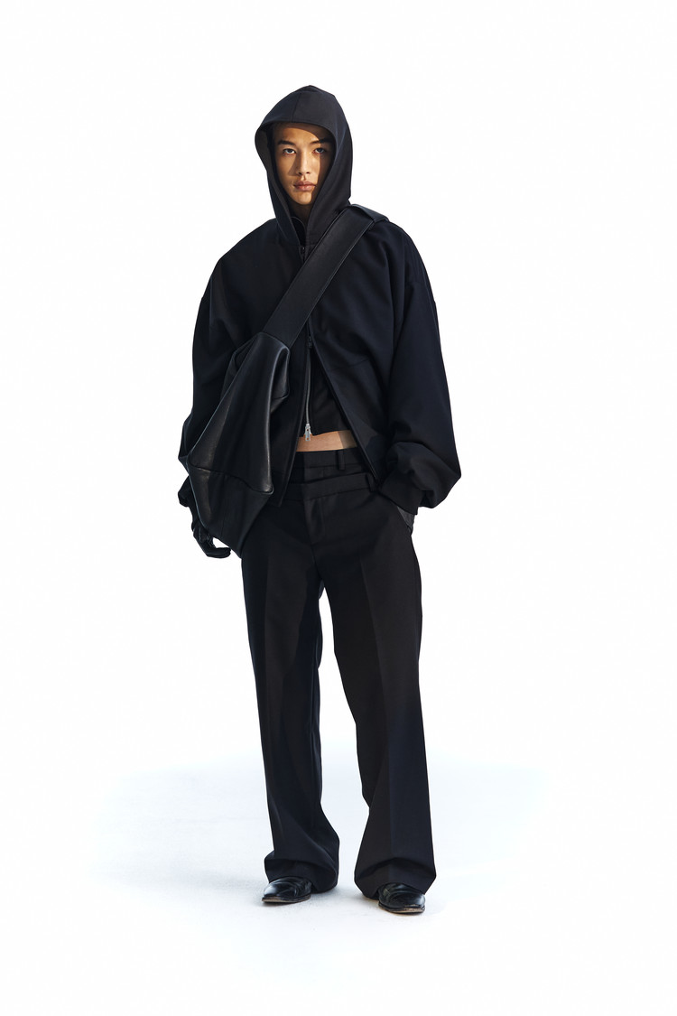 - WOOL TAILORED ZIP-UP HOODIE JACKET와 동일한 원단을 사용하여 세트로 착용 할 수 있게 제작 하였습니다.