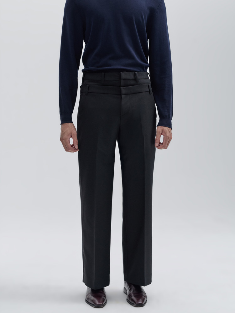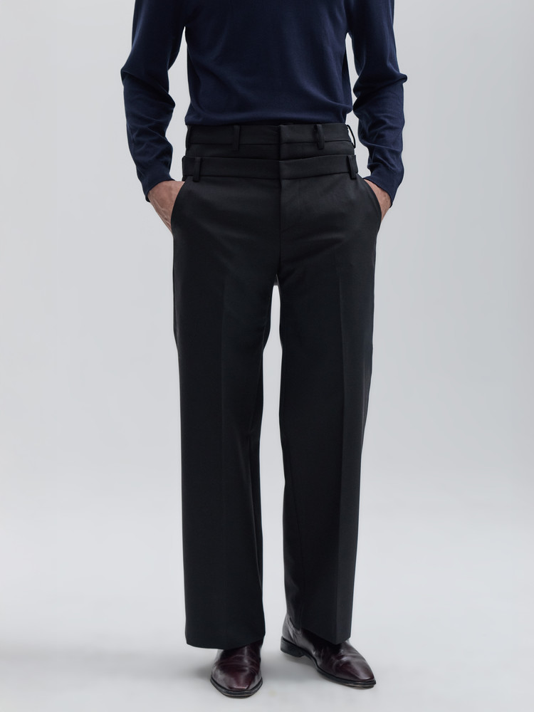 DOUBLE WAISTED TAILORING TROUSER (BLACK)