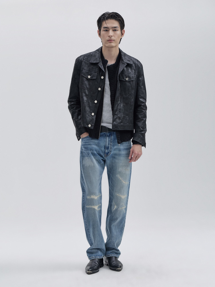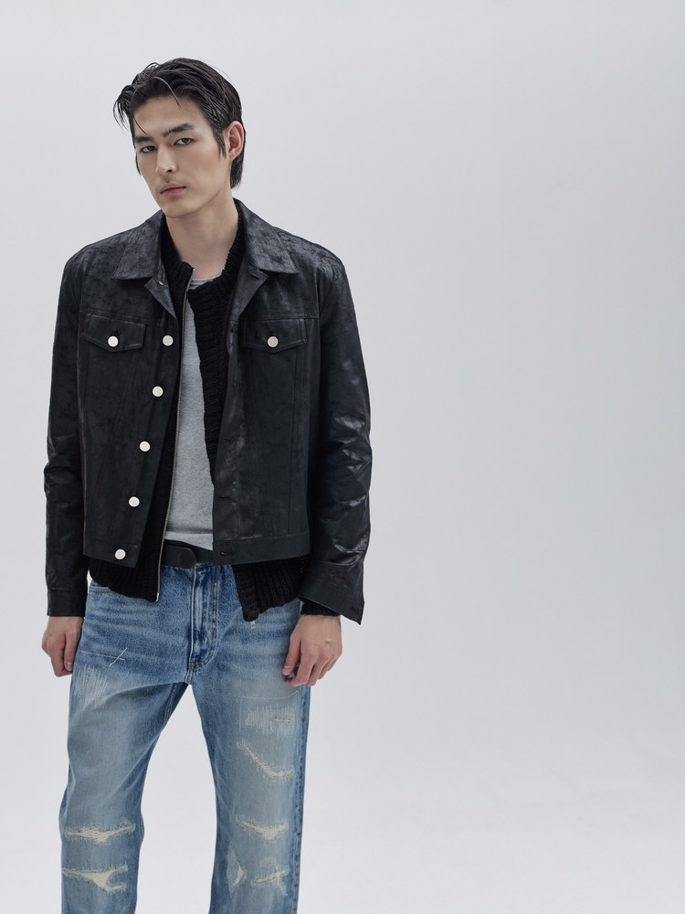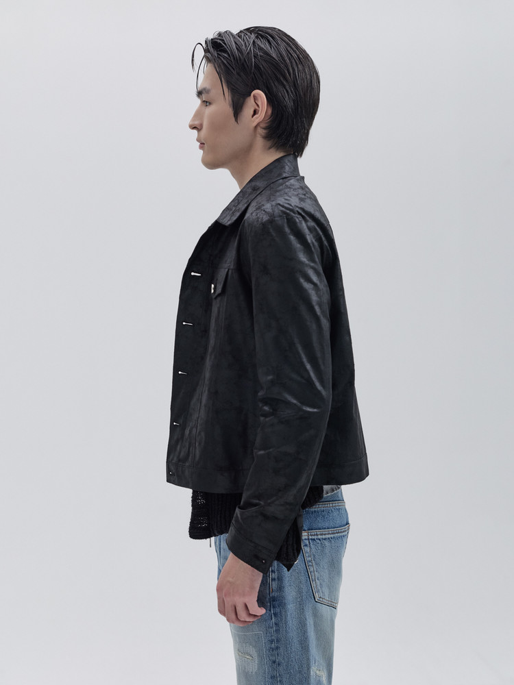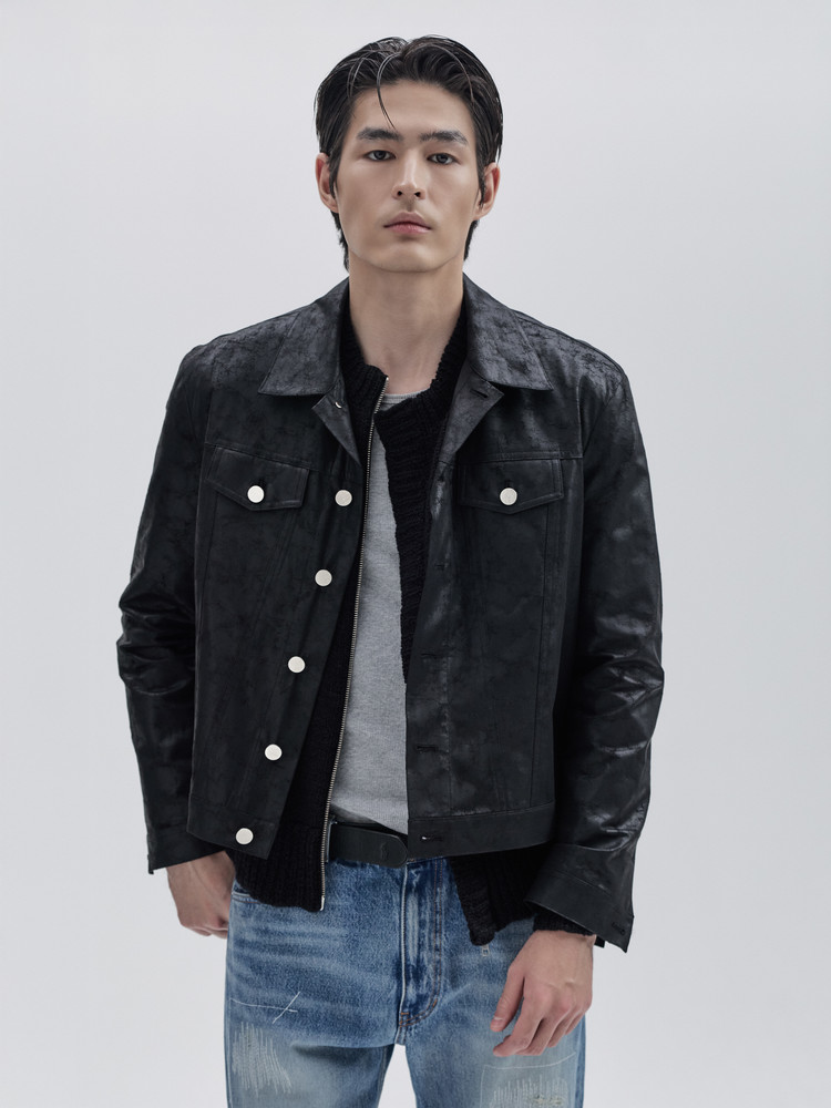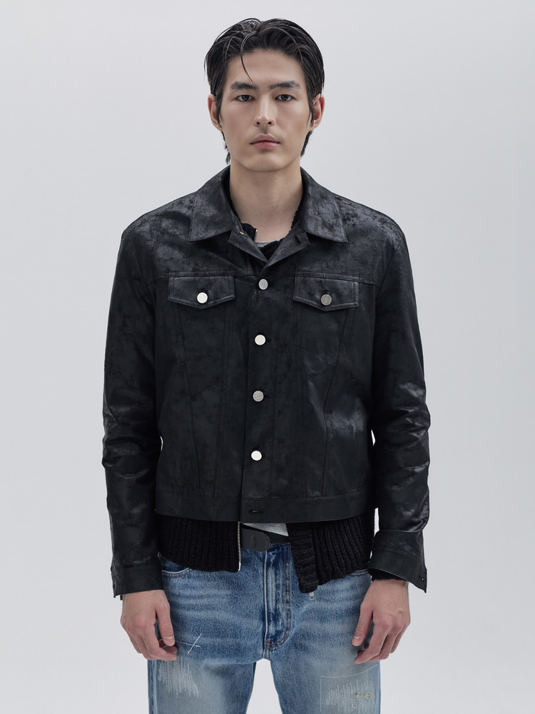 - 겉감은 폴리 원단에 크러쉬 가공과 얇은 코팅을 하여 완성한 트러커 점퍼입니다.