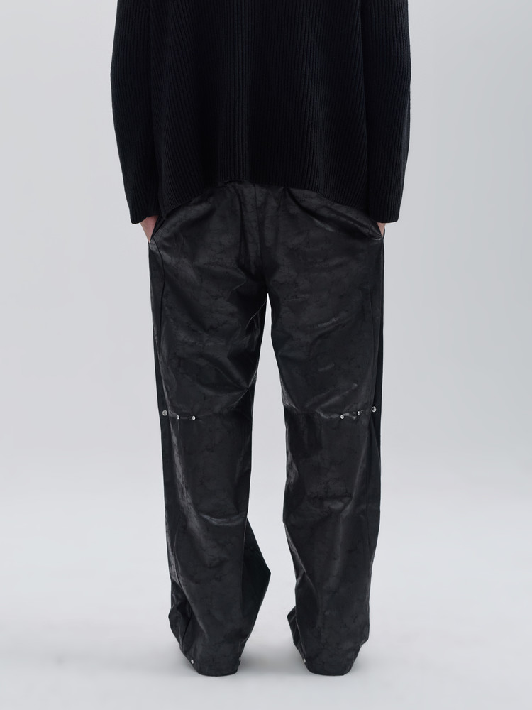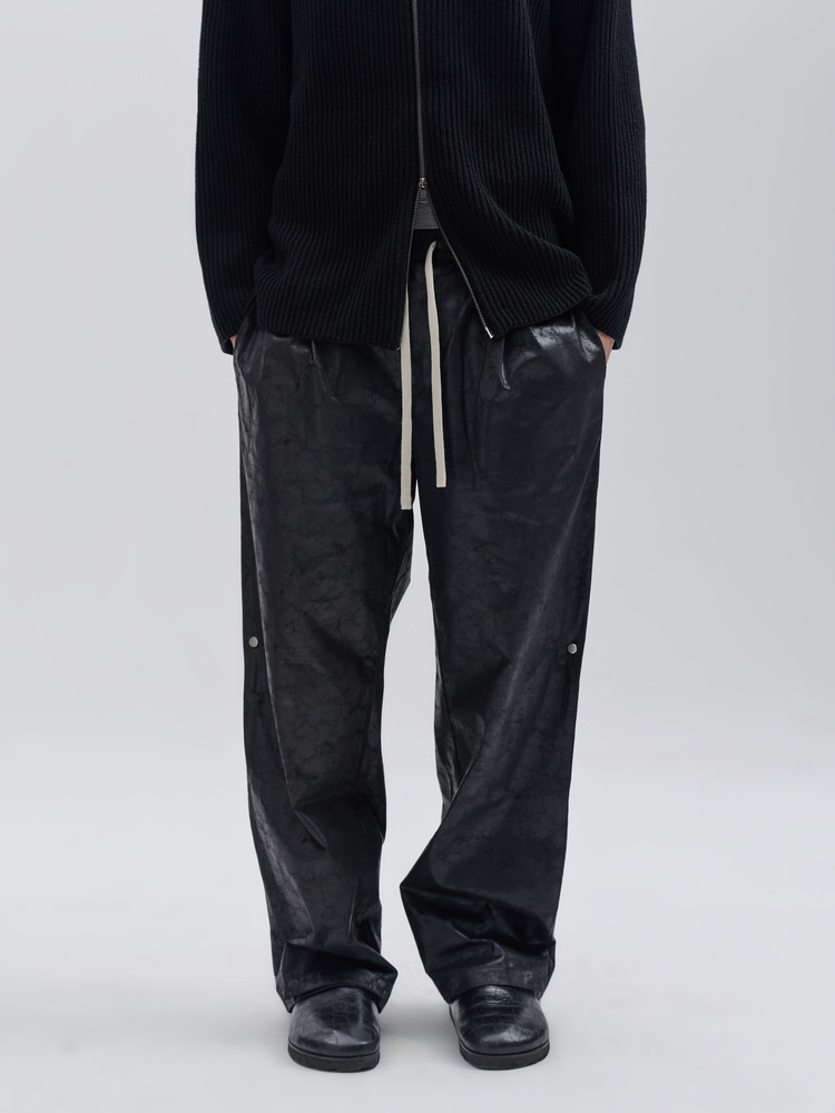 - 겉감은 폴리 원단에 크러쉬 가공과 얇은 코팅을 하여 완성한 스트레이트 핏의 팬츠입니다..