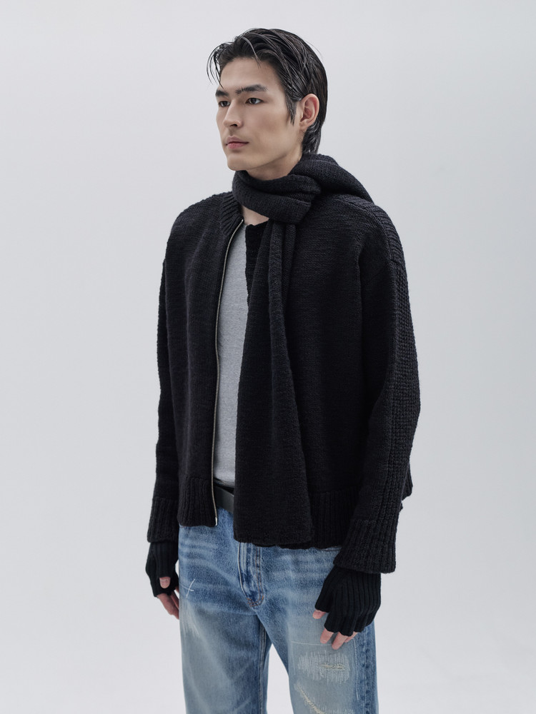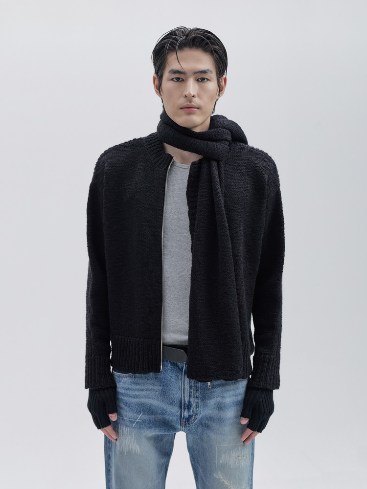 - 머플러와 셋트인 라운드 집업 니트 입니다.