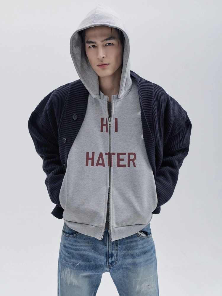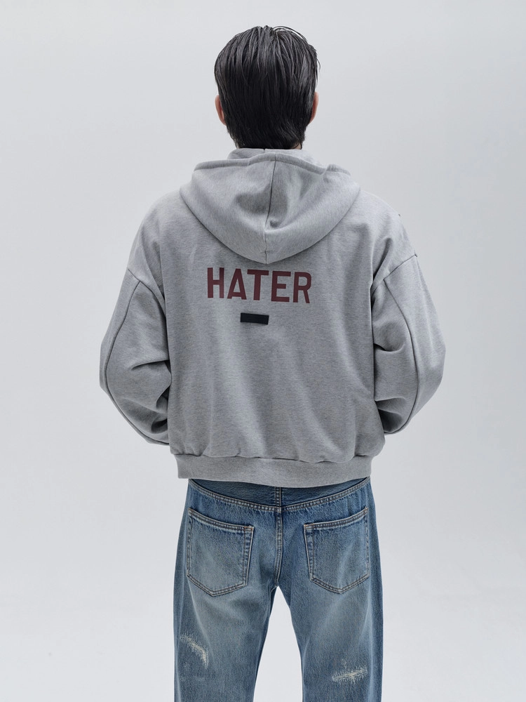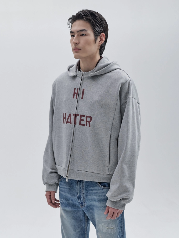 "HI HATER, BYE HATER" HOODIE ZIP-UP (GREY)